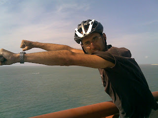 Après êtres partis de notre presqu'île, on à trouvé un papy en vélo qui nous à tenu la bavette jusqu'à la rochelle. Après ça on visite la ville, le siestou traditionnel, puis direction l'île de Ré où encore une fois le vent est de la partie (voir photo superman sur le pont). Après moult délibérations, nous partons dormir chez isa et yves où nous sommes comme des rois. Je m'écroule de fatigue actuellement donc je rends l'antenne. Bisous!