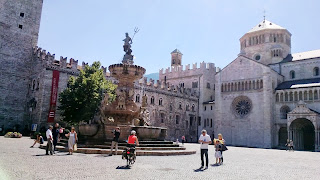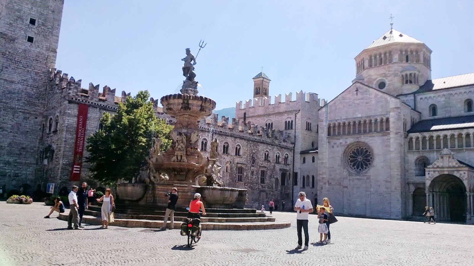 Puis arrivée ce midi à Trento. La ville est superbe, en particulier la plaza Duomo (cf vidéo). On passe un moment les yeux grands ouverts à visiter la ville à vélo. On se sent maintenant vraiment en Italie, avec les petites ruelles, les maisons colorées, et la langue allemande a disparue de la circulation (et les gens parlent très peu anglais...)